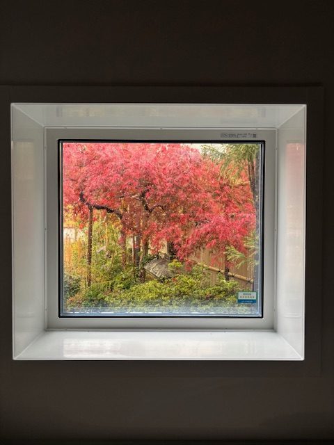 少し前に撮影したものですが、浴室から見えるシダレモミジが見事でした。