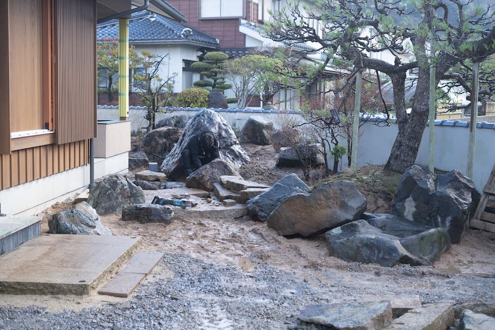 まずは既存の松を剪定し、既存の庭石を据え直し、動線を整え、植栽が少しづつ植え付けられてきました。