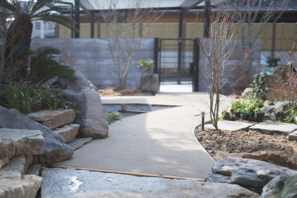 石の隙間に地被類(草)が入ると、いっきに森の中の景色のような自然な感じになりました。