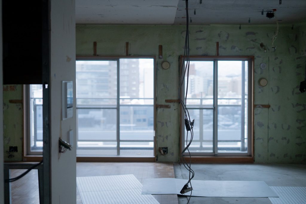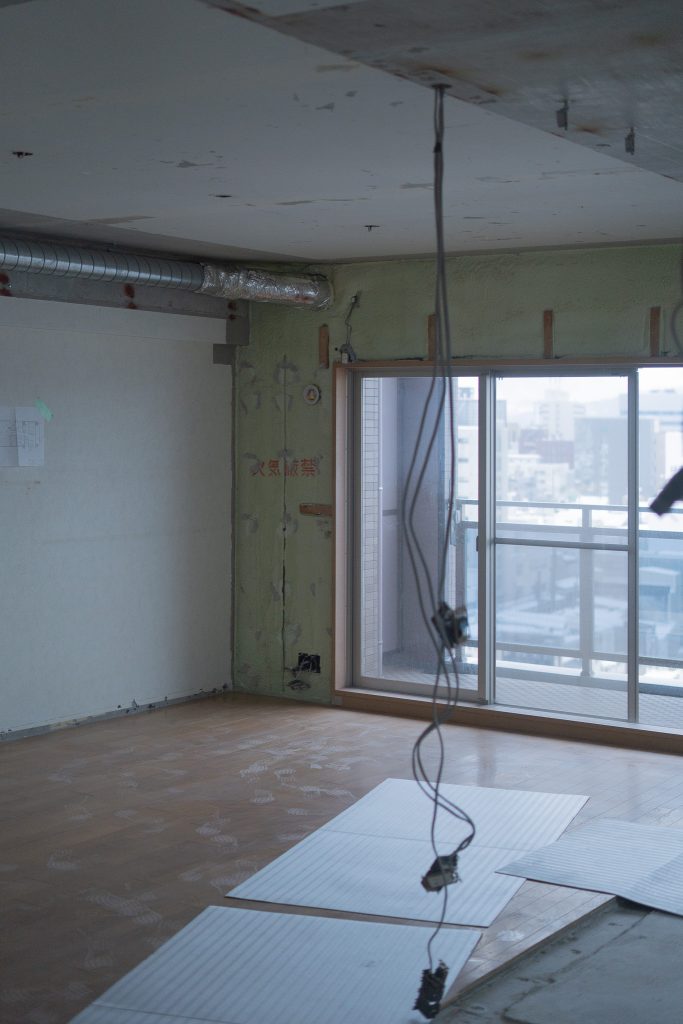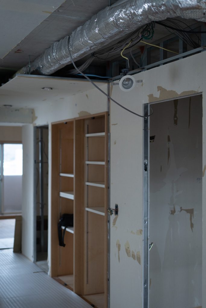 躯体や配線、配管があらわになったところで問題点と高さの確認。